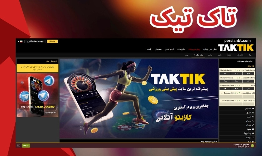 در بخش پیش بینی مسابقات ورزشی سایت پیش بینی tak tik بیش از 20 رشته ورزشی مختلف برای پیش بینی و شرط بندی ارائه شده است. و خب بر اساس بررسی هایی که ما داشته ایم، امکان پیش بینی ورزشی در این سایت با بهترین اسکریپت ها، بالاترین ضرایب و بهترین امکانات و شرایط فراهم شده است. همچنین در بخش کازینو آنلاین این سایت، تمامی بازی های کازینویی قدیمی و جدید به صورت کامل با بهترین الگوریتم ها و بالا ترین ضرایب برای شرط بندی ارائه شده است. شما در این بخش می توانید تجربه ای بسیار جذاب و مهیج در شرط بندی هایتان داشته باشید.